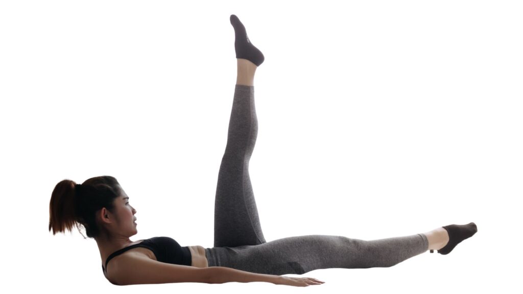 やり方:仰向けに寝て、足をまっすぐ伸ばし床から持ち上げます。