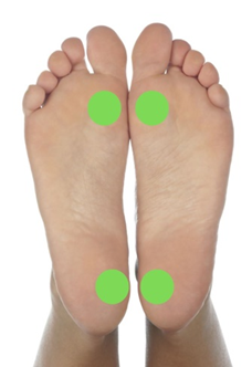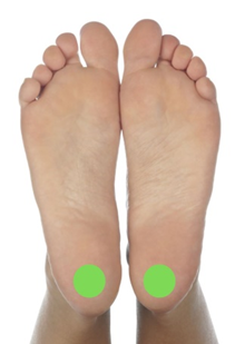 この体重がかかっている側からシフトする能力を向上させるには、足のアーチ、具体的にはかかとの内側と親指の下で足の接触を促進します。(写真右側)